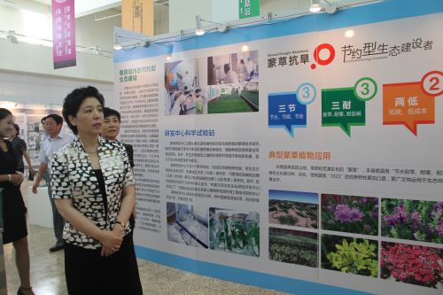各位領(lǐng)導(dǎo)首先對(duì)我公司在抗旱植物研發(fā)和推廣應(yīng)用方面所取得的成績(jī)給予了肯定。隨后,在我公司承建的內(nèi)蒙古博物院綠化工程展區(qū)前,各位領(lǐng)導(dǎo)談起當(dāng)初該工程在植物種類選取、色彩搭配、凸顯地方特色時(shí),充分肯定了該工程綜合多種因素考慮最終選擇“3321”蒙草植物的正確性,并表示事實(shí)也證明蒙草植物確實(shí)經(jīng)受住了考驗(yàn)。當(dāng)進(jìn)一步參觀至公司清水河縣小城鎮(zhèn)環(huán)境修復(fù)項(xiàng)目展區(qū)前,自治區(qū)政協(xié)主席任亞平再次對(duì)公司在干旱缺水地區(qū)和自治區(qū)縣域經(jīng)濟(jì)發(fā)展過程中做出的貢獻(xiàn)給予了肯定。