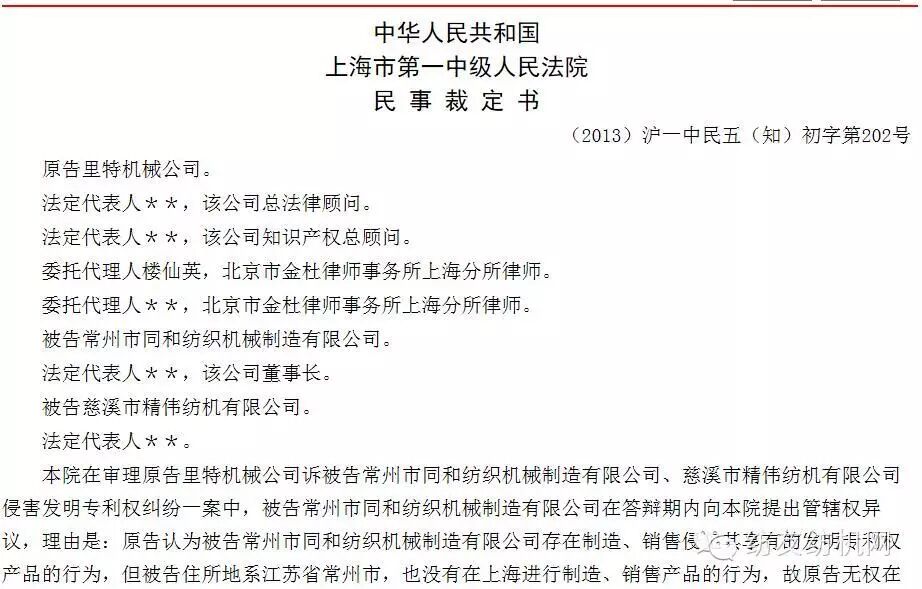 最近的一場官司,讓人們對于同和紡機的技術開發(fā)能力有了更清晰的認識。2014年,世界知名紡機企業(yè)向上海中院起訴同和在上海展會的一臺樣機使用了一種“凝縮裝置”侵犯了該公司的發(fā)明專利。但此凝縮裝置是同和采購浙江慈溪某供應商的產品。故中院一審及高院二審均判定同和未發(fā)生侵權行為。通過此次知識產權烏龍案,同和全力自主研發(fā)創(chuàng)新,三個月內推出了具有自主發(fā)明專利的凝縮裝置,為同和的卡摩紡細紗機整體知識產權提供了強有力保證。