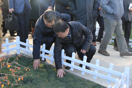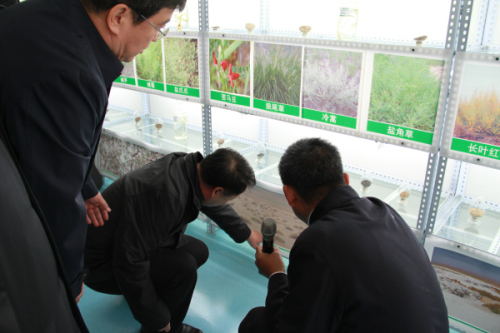 考察團(tuán)先后參觀了蒙草植物標(biāo)本室、北方植物種質(zhì)資源庫(kù)、組培育苗車間等。講到蒙草為什么能抗旱時(shí),王召明干脆直接從育苗床上拿起一盆沙冬青小苗,倒掉里面的種植土,向大家展示它發(fā)達(dá)的根系。楊部長(zhǎng)感慨說,這就是蒙草植物的秘密,也是蒙草公司成功的秘密啊!蒙草的鄉(xiāng)土化思維在城市綠化中開辟了新路,更在廣闊的道路沿線邊坡生態(tài)防護(hù)中提供了節(jié)約型生態(tài)建設(shè)范例,為祖國(guó)北方和國(guó)家生態(tài)建設(shè)做出了貢獻(xiàn)。