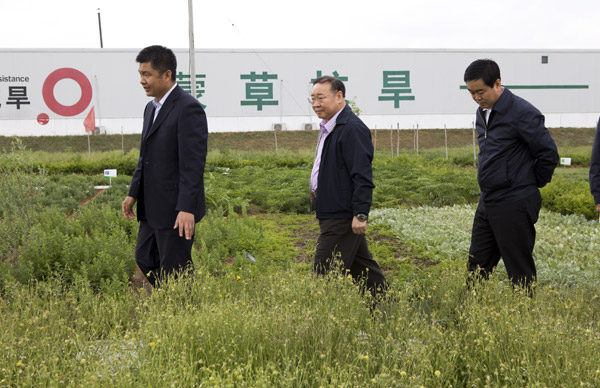 當(dāng)日上午,那順孟和一行實(shí)地視察了內(nèi)蒙古和信園蒙草抗旱綠化股份有限公司育苗基地。他強(qiáng)調(diào),在今后的發(fā)展中,要用工業(yè)化理念謀劃農(nóng)業(yè)發(fā)展,要把工業(yè)與農(nóng)業(yè)相融化,很好地培育蒙草抗旱這樣的朝陽產(chǎn)業(yè),把和林縣打造成為具有較高水平的首府衛(wèi)星城,為首府經(jīng)濟(jì)實(shí)現(xiàn)又好又快發(fā)展做出貢獻(xiàn)。