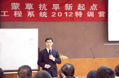 12月11日,蒙草抗旱新起點·2012工程系統(tǒng)特訓營的室內(nèi)課程培訓進入第二天。全天是由段燁老師主講《性格解密與鉆石團隊》,除全程參與培訓的人員參加外,公司部長級以上人員也都聆聽了講座。