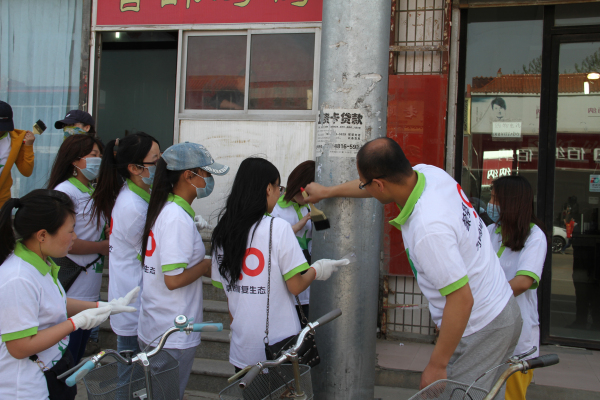 “草精靈”們放棄休息時間,早早地來到和林縣城,頭頂烈日,手拿勞動工具,風風火火地干起來!有些志愿者負責撿拾道路兩邊和綠化帶里的垃圾,并整治非機動車的亂停放;另一些志愿者們則集中起來,對路邊的黑色廣告進行鏟除。經過一上午的勞動,幾條街道的環(huán)境面貌有了煥然一新的感覺,“草精靈”們用辛勤的汗水換得居民的稱贊,用無聲的行動起到帶頭作用。
