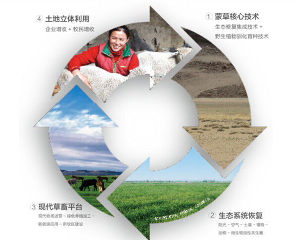 在蒙草人的理念里,“適者生存”的原理,不僅僅是把干旱半干旱地區(qū)生長的鄉(xiāng)土植物馴化出來運用到生態(tài)修復、園林綠化等生態(tài)環(huán)境建設中,更要大規(guī)模的運用于生態(tài)牧場及牧草種業(yè)相關的草原產業(yè)鏈中。努力打造集“草原生態(tài)修復、草原種質資源庫建設、中蒙藥用植物和優(yōu)質牧草規(guī)?;N植、綠色養(yǎng)殖、綠色農畜產品加工、新能源技術應用”為一體的草原生態(tài)產業(yè)鏈,進而提升內蒙古草原生態(tài)產業(yè)的核心競爭力。