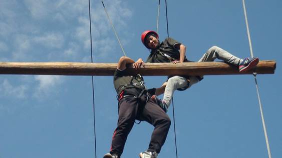 ★高空斷橋考驗團隊成員的“亮劍精神”,小伙伴們成功克服心理畏懼,可謂“斷橋一小步、人生一大步”。