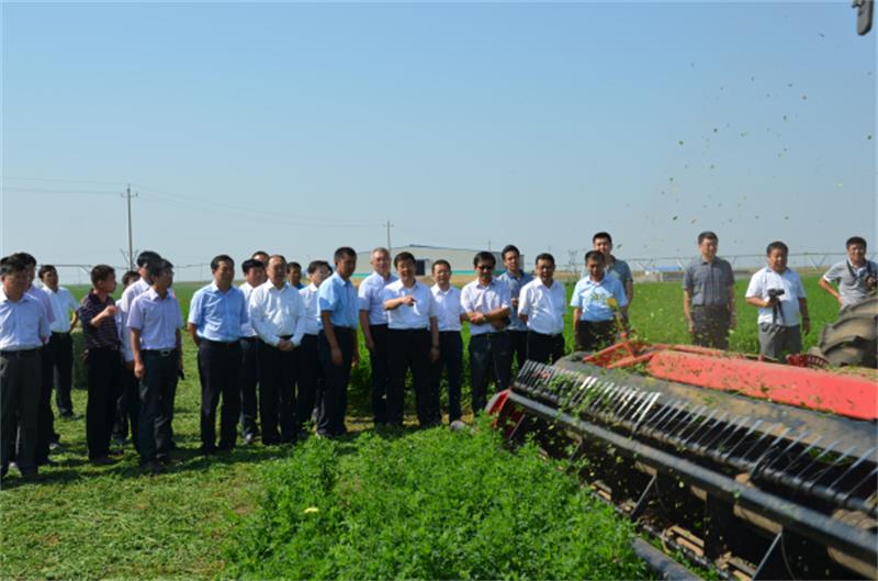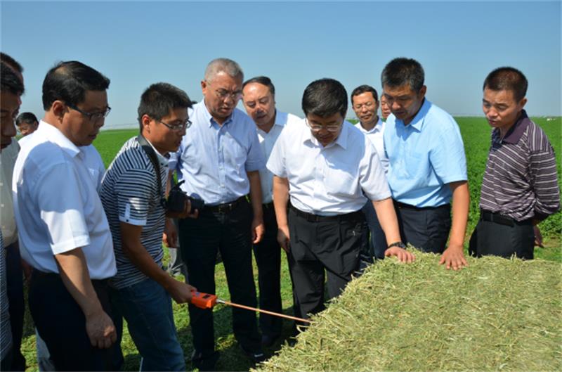 巴特爾主席一行頂著烈日酷暑,來(lái)到了我公司的生產(chǎn)現(xiàn)場(chǎng)實(shí)地查看了優(yōu)質(zhì)牧草的收割情況。在我公司種植的紫花苜蓿生產(chǎn)基地里,巴特爾主席詳細(xì)聽(tīng)取了阿旗政 府副旗長(zhǎng)魏二利和蒙草基地企業(yè)負(fù)責(zé)人張瑞林的具體工作匯報(bào),并詳細(xì)詢(xún)問(wèn)了解了紫花苜蓿草種植、收獲、貯存及銷(xiāo)售等多個(gè)生產(chǎn)經(jīng)營(yíng)環(huán)節(jié)的情況。面對(duì)一望無(wú)際、 草香四溢、滿目青翠的人工草場(chǎng),巴特爾主席十分高興。
