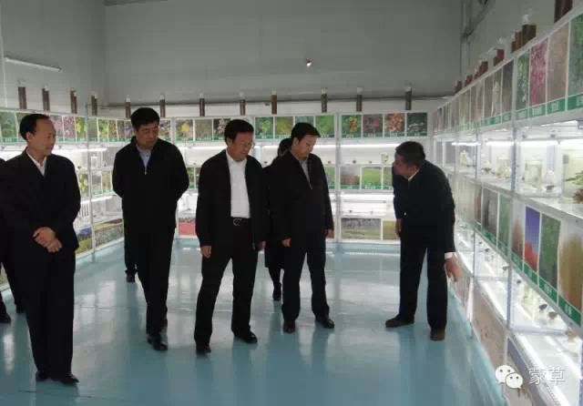 蒙草董事長王召明在標本室向馮新柱一行介紹北方常見植物