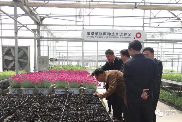 馮新柱一行在蒙草植物原種選育試種區(qū)參觀