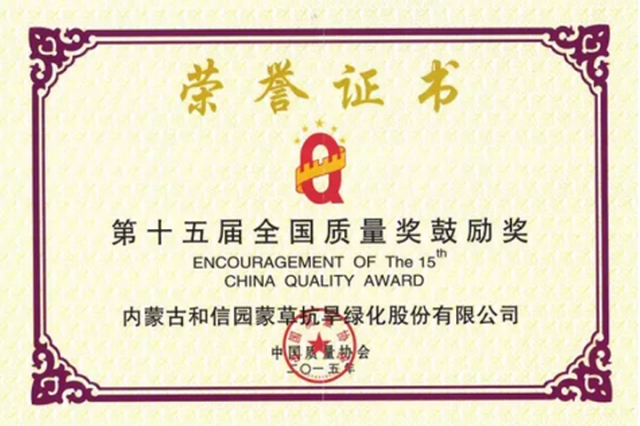 2015年11月蒙草獲第二屆中國(guó)質(zhì)量獎(jiǎng)(中國(guó)質(zhì)量屆最高榮譽(yù))提名獎(jiǎng)候選(公示期);