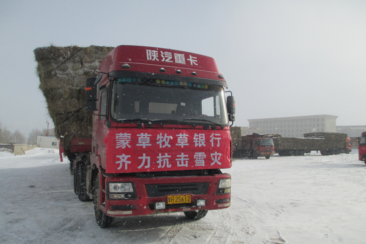 2015年的冬天,內(nèi)蒙古錫林郭勒盟先后6次出現(xiàn)大范圍降雪天氣,平均降雪量較往年同期值高出3倍。大面積降雪給牧業(yè)帶來(lái)極大沖擊,農(nóng)牧民生產(chǎn)生活受到嚴(yán)重影響,據(jù)統(tǒng)計(jì),正鑲白旗全境受災(zāi)人口達(dá)5.3萬(wàn)人,受災(zāi)牲畜達(dá)20多萬(wàn)頭只。當(dāng)正鑲白旗部分牧民沒(méi)有充足飼草儲(chǔ)備,牧區(qū)飼草料供應(yīng)出現(xiàn)嚴(yán)重短缺,價(jià)格一路飆升時(shí),蒙草公司迅速啟動(dòng)牧草銀行儲(chǔ)備,克服重重困難,歷時(shí)4天,緊急馳騁1000余公里,緊急調(diào)撥價(jià)值200萬(wàn)元的天然牧草支援正鑲白旗,把“救命草”及時(shí)發(fā)放到最需要的牧民手里。