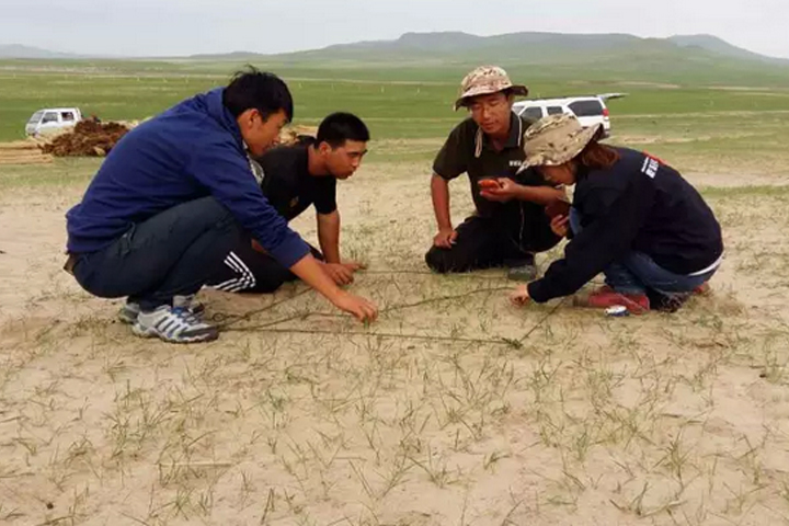 探尋這片草原的保護之路,我們不難發(fā)現(xiàn)其中的奧秘所在!烏拉蓋草原退化主要出現(xiàn)在上世紀90年代中期之后,“三化”草原面積為225.73萬畝,相比于2009年增加了5.66%,數(shù)據(jù)顯示烏拉蓋草原“三化”面積仍在不斷增加。直到2015年,蒙草公司生態(tài)系統(tǒng)研究院院長邢旗和她的科研團隊一起深入烏拉蓋草原腹地,通過對2010年和2014年TM衛(wèi)星遙感影像數(shù)據(jù)判讀,結(jié)合地面調(diào)查和數(shù)據(jù)收集對烏拉蓋草原修復(fù)進行立體分析。采用機械沙障、生物沙障及枯草鋪設(shè)等方式對不同程度的沙化地區(qū)進行組合式修復(fù)。