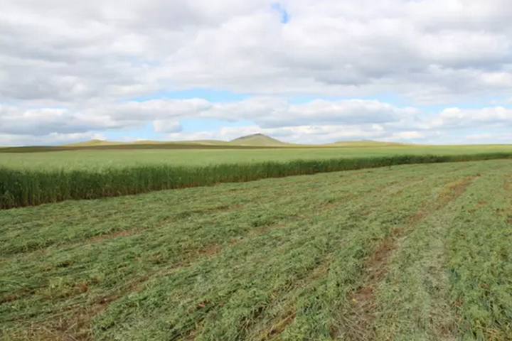 近年來,由于草原退化、草原禁牧,導(dǎo)致烏拉蓋地區(qū)天然草的產(chǎn)量無法滿足家畜在冬季對牧草的需求。2015年蒙草團隊進入烏拉蓋草原修復(fù)地區(qū),立體分析了當(dāng)?shù)氐闹脖?、土壤、牧草產(chǎn)量等數(shù)據(jù)。研究人員選擇不同品種的一年生與多年生、豆科與禾本科牧草混播的方式建植人工草地。通過增加土壤氮素和有機質(zhì)含量,提高牧草蛋白質(zhì)的質(zhì)量。經(jīng)過一輪的修復(fù)治理后,生態(tài)修復(fù)與牧草業(yè)集成取得了較好的成果。烏拉蓋402畝人工草地共收獲牧草143.5噸,相當(dāng)于當(dāng)?shù)靥烊荒敛莓a(chǎn)量的1.8—4.3倍??鄢杀就度耄敛輧羰杖霝?.7萬元。