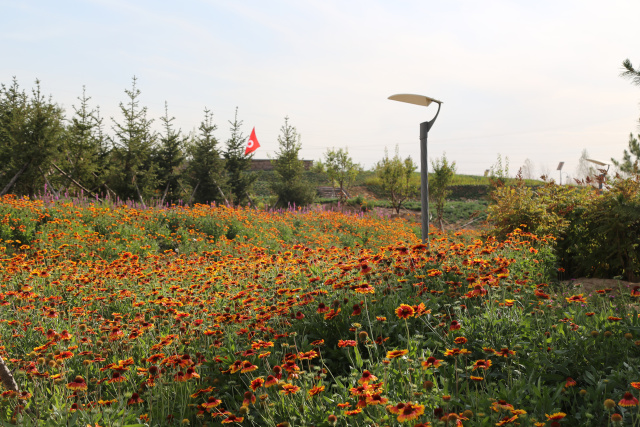 蒙草根據(jù)文獻(xiàn)記載及實(shí)地調(diào)查,經(jīng)過選種培育確定了25種鄉(xiāng)土植物,其中包括長(zhǎng)青石竹、八寶景天、天人菊、千屈菜等具有節(jié)水功能、土壤改良的鄉(xiāng)土植物,進(jìn)而達(dá)到節(jié)水的目的。不僅如此,蒙草根據(jù)不同的鄉(xiāng)土植物花期進(jìn)行合理配比,打造出具有觀賞性的花海、海帶,形成三季有花、四季各有季相的自然景觀。