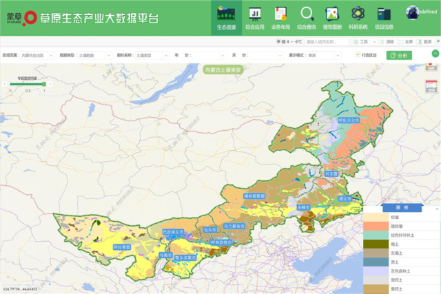 蒙草草原生態(tài)產(chǎn)業(yè)大數(shù)據(jù)平臺(tái)土壤類型頁(yè)面