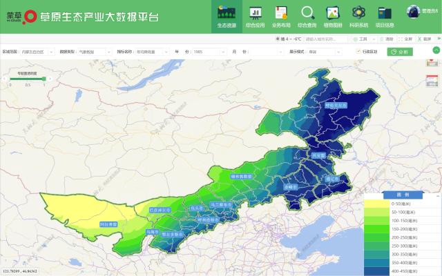 蒙草草原生態(tài)產(chǎn)業(yè)大數(shù)據(jù)平臺(tái)年均降雨頁(yè)面