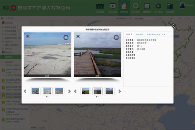 蒙草草原生態(tài)產(chǎn)業(yè)大數(shù)據(jù)平臺(tái)修復(fù)案例頁(yè)面