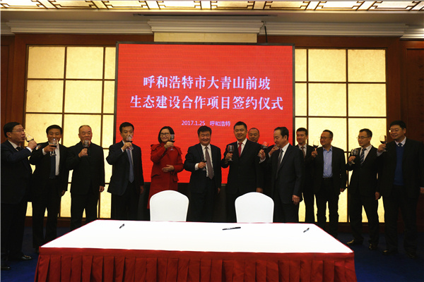 2017年1月25日,呼和浩特市人民政府與蒙草生態(tài)簽署了《大青山前坡治理項(xiàng)目合作意向書》與《呼和浩特綠色生態(tài)發(fā)展基金合作框架協(xié)議》,呼和浩特市市長(zhǎng)李杰翔、副市長(zhǎng)康存耀,蒙草生態(tài)董事長(zhǎng)王召明,土左旗、回民區(qū)、賽罕區(qū)、新城區(qū)政府分管領(lǐng)導(dǎo)等出席了簽約儀式。