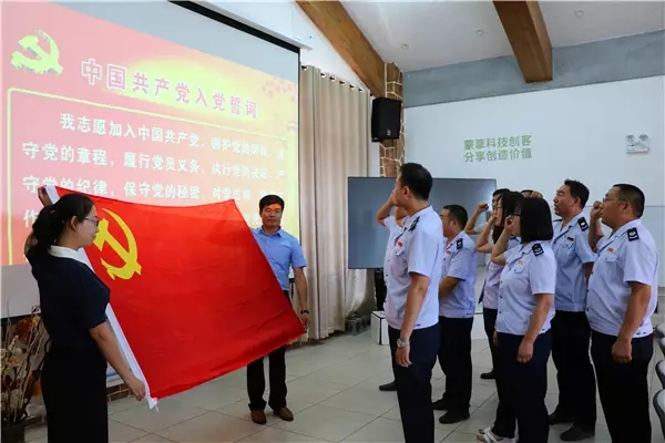 產(chǎn)業(yè)在延伸,蒙草黨建的觸角也在不斷延伸。在通遼扎魯特旗的生態(tài)牧場、在和林格爾新區(qū)的白彥兔村、在阿拉善荒漠生態(tài)研究中心……一面面鮮艷的黨旗插在了綠色產(chǎn)業(yè)發(fā)展的大地上。