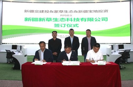 5月31日,新疆新草生態(tài)科技有限公司設(shè)立儀式在蒙草生態(tài)(300355)種業(yè)中心簽訂,新疆交建投李金福、蒙草生態(tài)高俊剛、新疆寶地投資王小兵共同簽署出資協(xié)議及公司章程。
